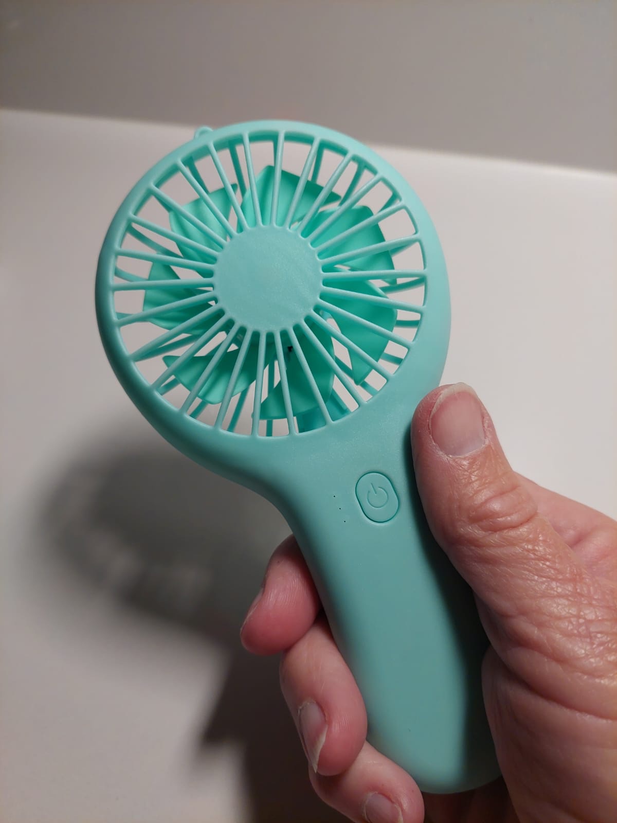 Handig toch en altijd verkoeling bij je en je laad hem zo op met de bijgeleverde usb kabel!